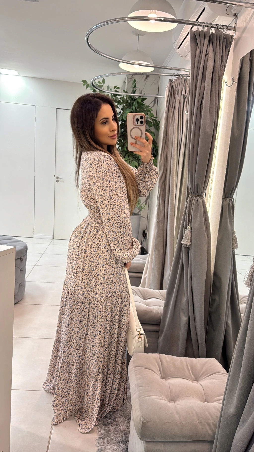 O comprimento longo traz elegância e fluidez, ideal para ocasiões especiais ou para um visual casual com sofisticação. Seu caimento suave e o detalhe do lastex tornam o Vestido Floratta uma escolha versátil, que combina com diferentes estilos e acessórios.